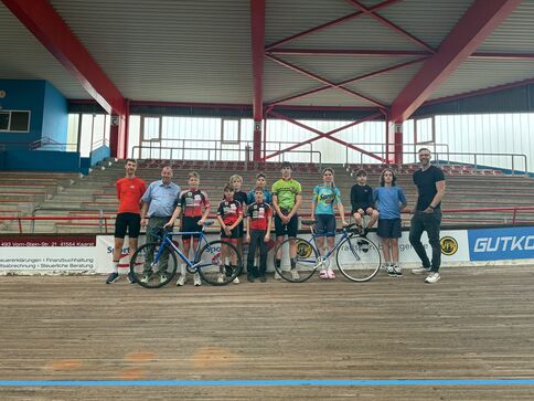mit 9 Jugendlichen zum ersten Mal im Sportforum, um ihnen ein Gefühl für die Radrennbahn zu vermitteln und Radsport aus einer ganz besonderen Perspektive zu erleben.